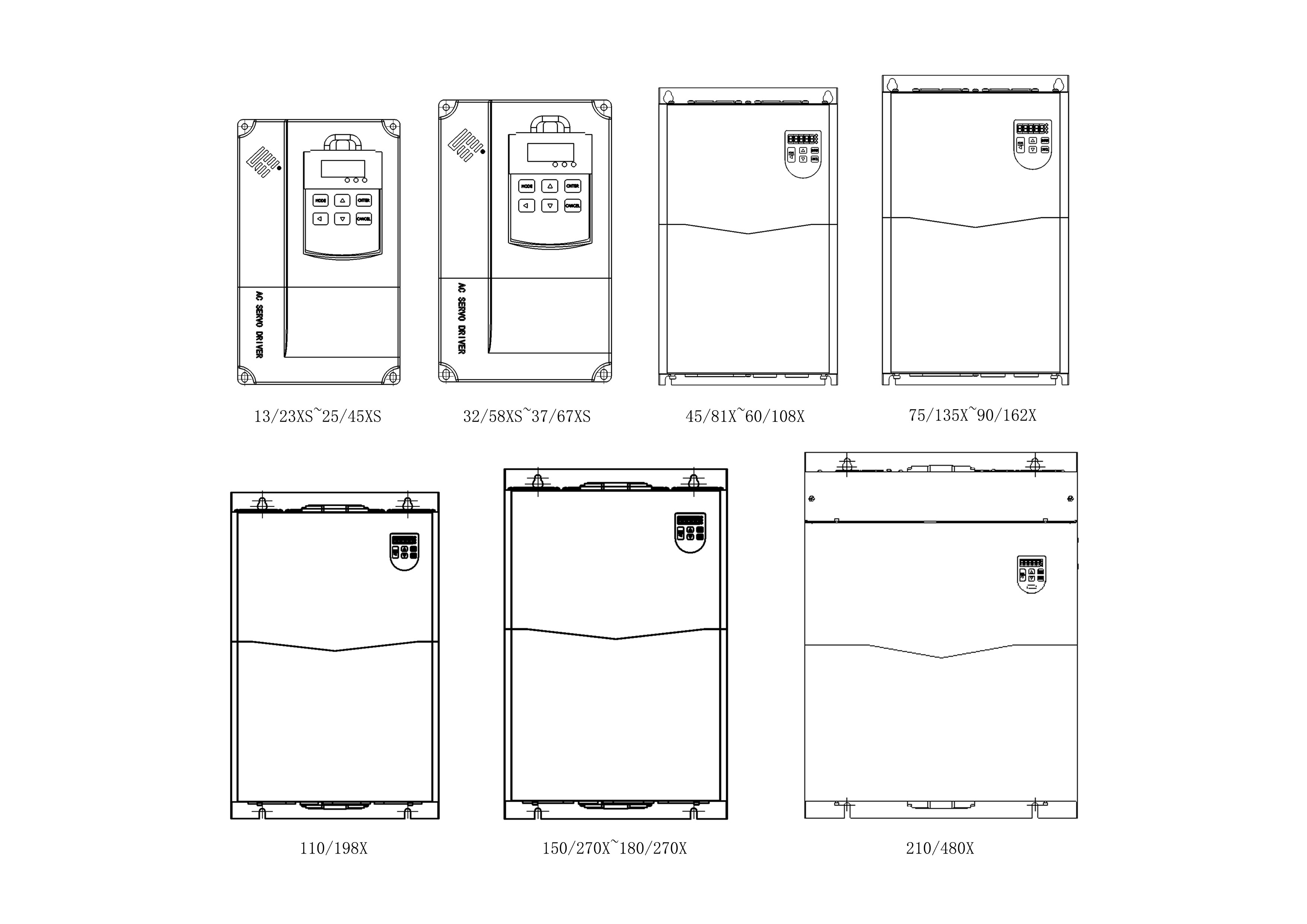 NAS G系列交流伺服驅(qū)動器結(jié)構(gòu)由小到大分幾類,外形如下: