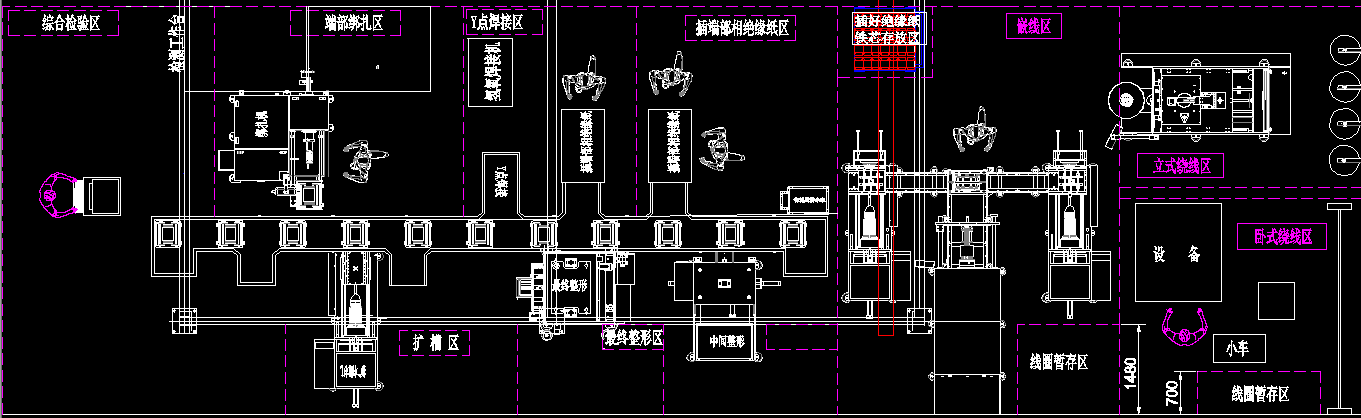 定子自動化生產(chǎn)線由插紙機、立式繞線機、嵌線機、嵌擴機、中間整形機、最終整形機和綁線機等設(shè)備組成。
