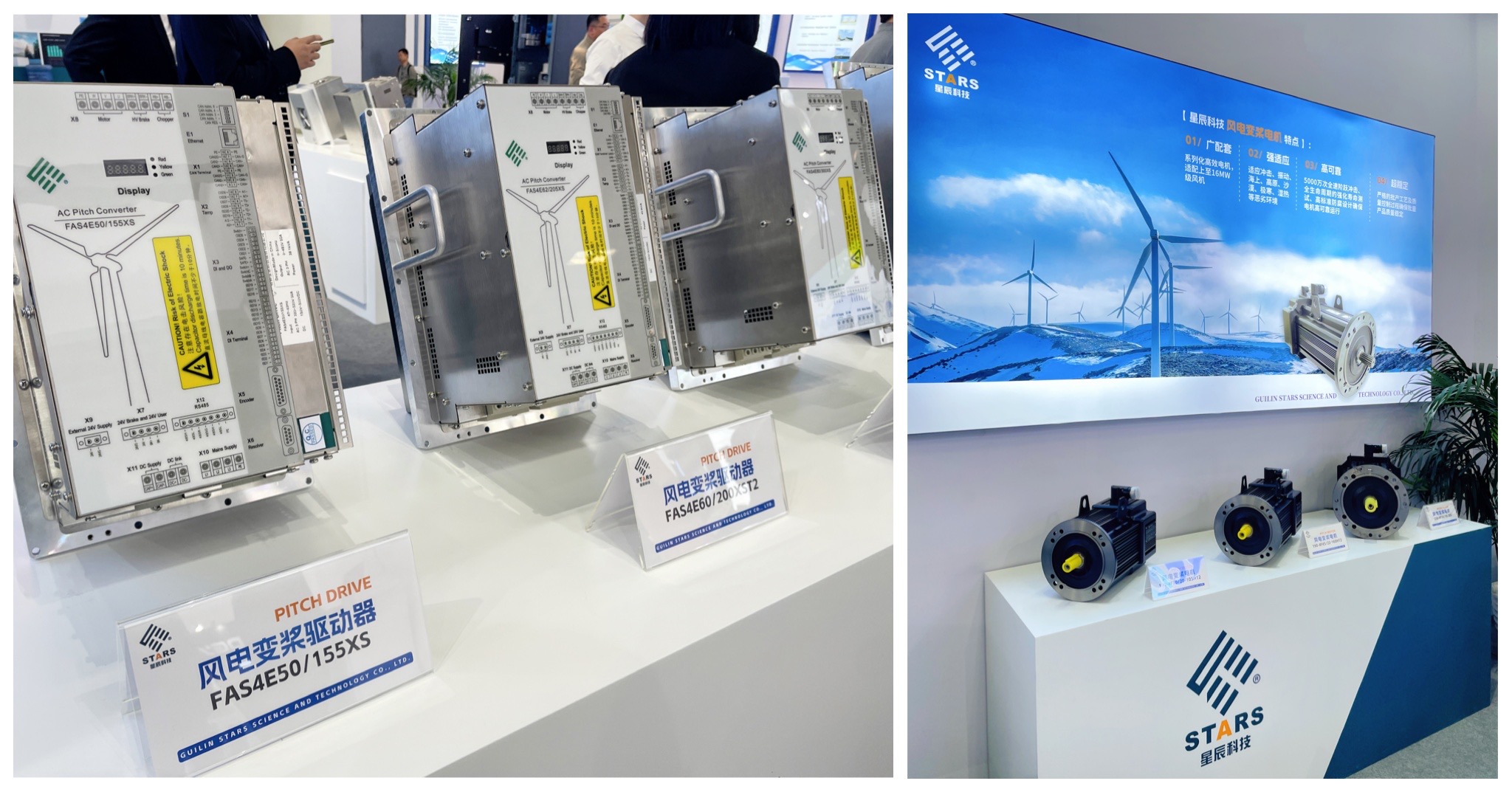 風能展上,星辰科技展示了多款變槳驅(qū)動器、變槳電機及雙向DCDC儲能電源產(chǎn)品,系列產(chǎn)品可覆蓋陸上1.5MW~9MW和海上6MW~16MW風機,具有高開放性、高集成、高精度、高安全、高可靠、配套廣、適應(yīng)強等特點。