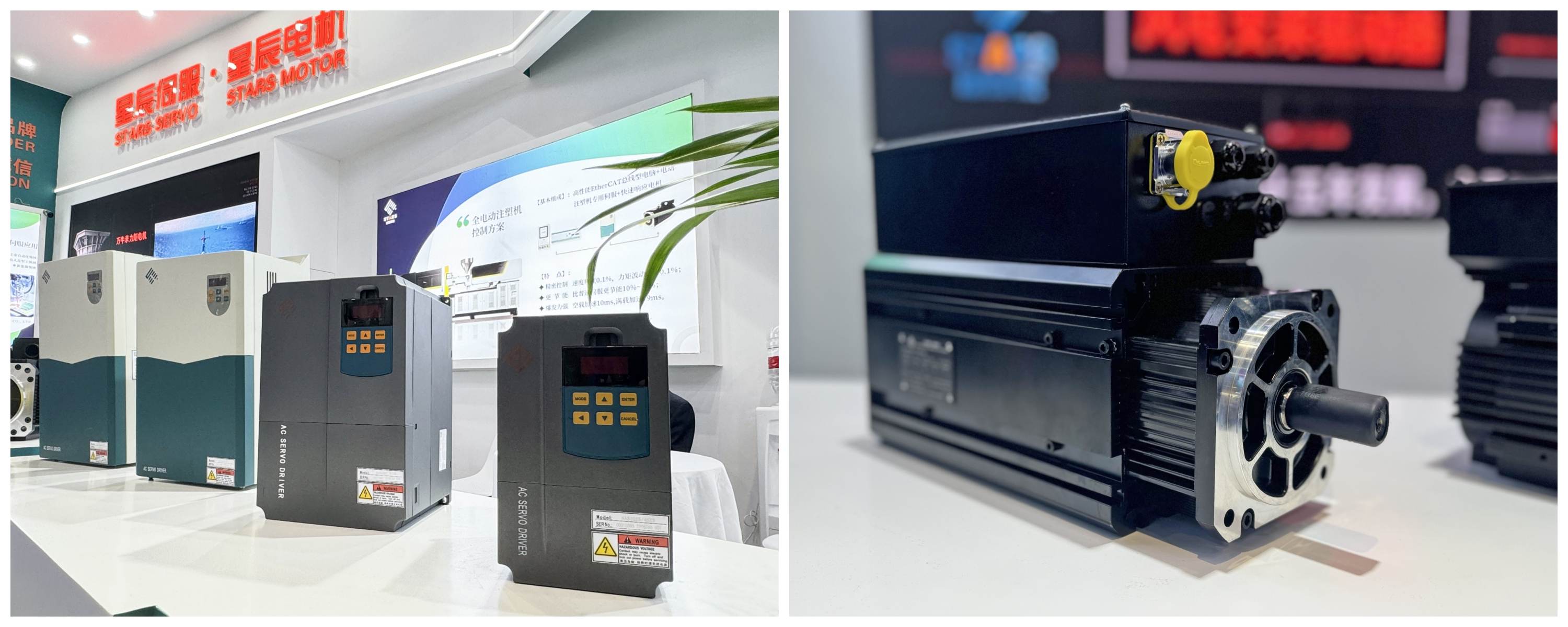展會(huì)上,星辰科技展示了多款液壓一體式伺服、5.5kW-110kW交流伺服驅(qū)動(dòng)器及5kW-110kW交流永磁同步電機(jī)??蓱?yīng)用于注塑機(jī)、彈簧機(jī)、激光切割機(jī)、機(jī)器人等先進(jìn)制造領(lǐng)域。